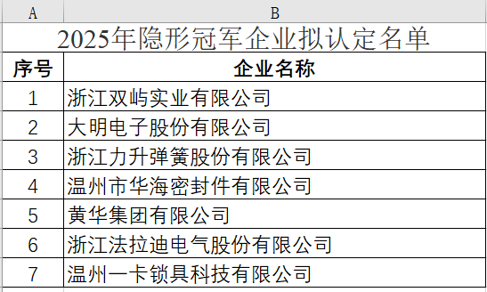 關(guān)于2025年度浙江省隱形冠軍企業(yè)認定和復核通過名單的公示