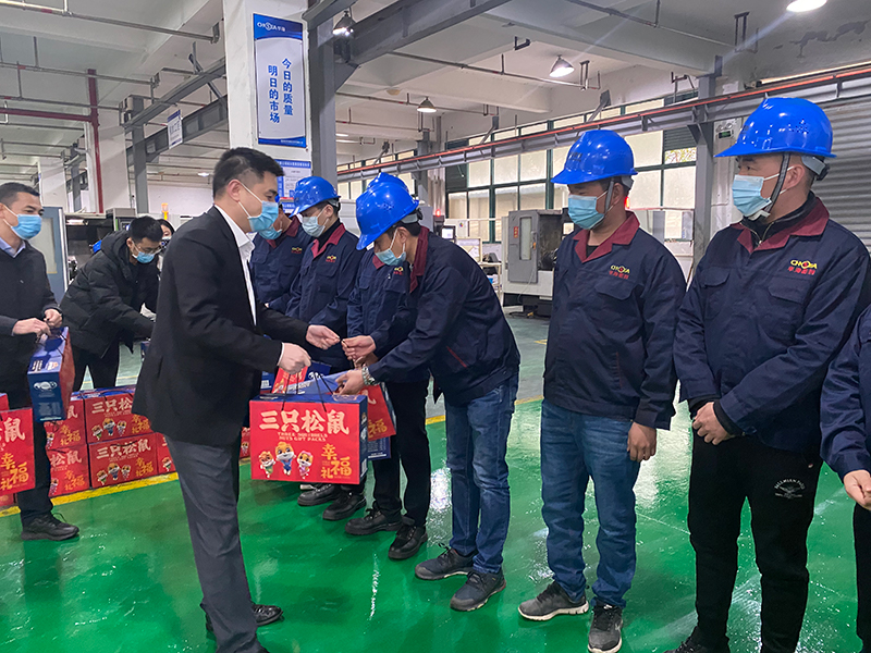 龍灣區(qū)夏區(qū)長在2022年前來溫州市華海密封件有限公司對公司員工展開新春慰問活動。