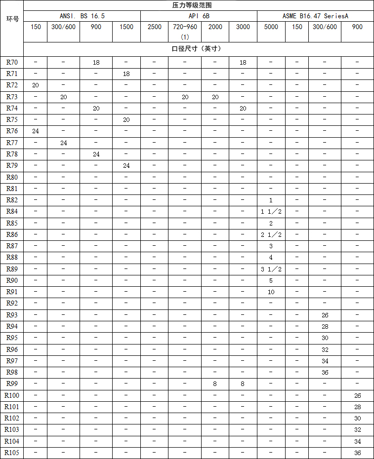 flexftallic風格R環(huán)式節(jié)點可以制造符合有關標準符合以下法蘭代號